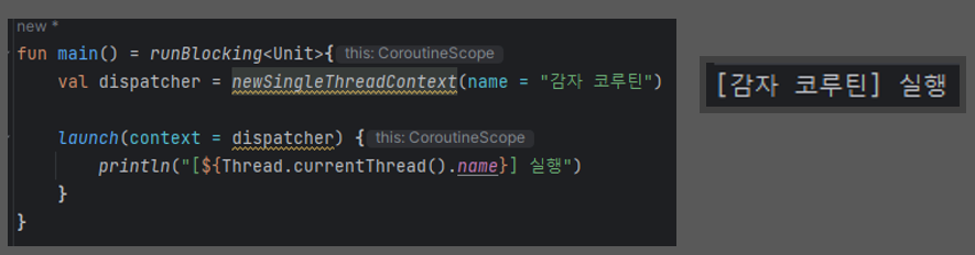 val dispatcher = newSingleThreadContext(name = "고구마 스레드")