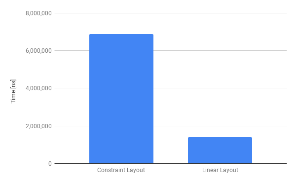 Android Developers Blog에 따르면 기존 RelativeLayout을 사용한 화면에서 렌더링 시 약 90번의 Two-pass process가 일어났지만 ConstraintLayout을 활용한 화면에선 20번의 Two-pass process가 일어나는 것을 볼 수 있습니다.