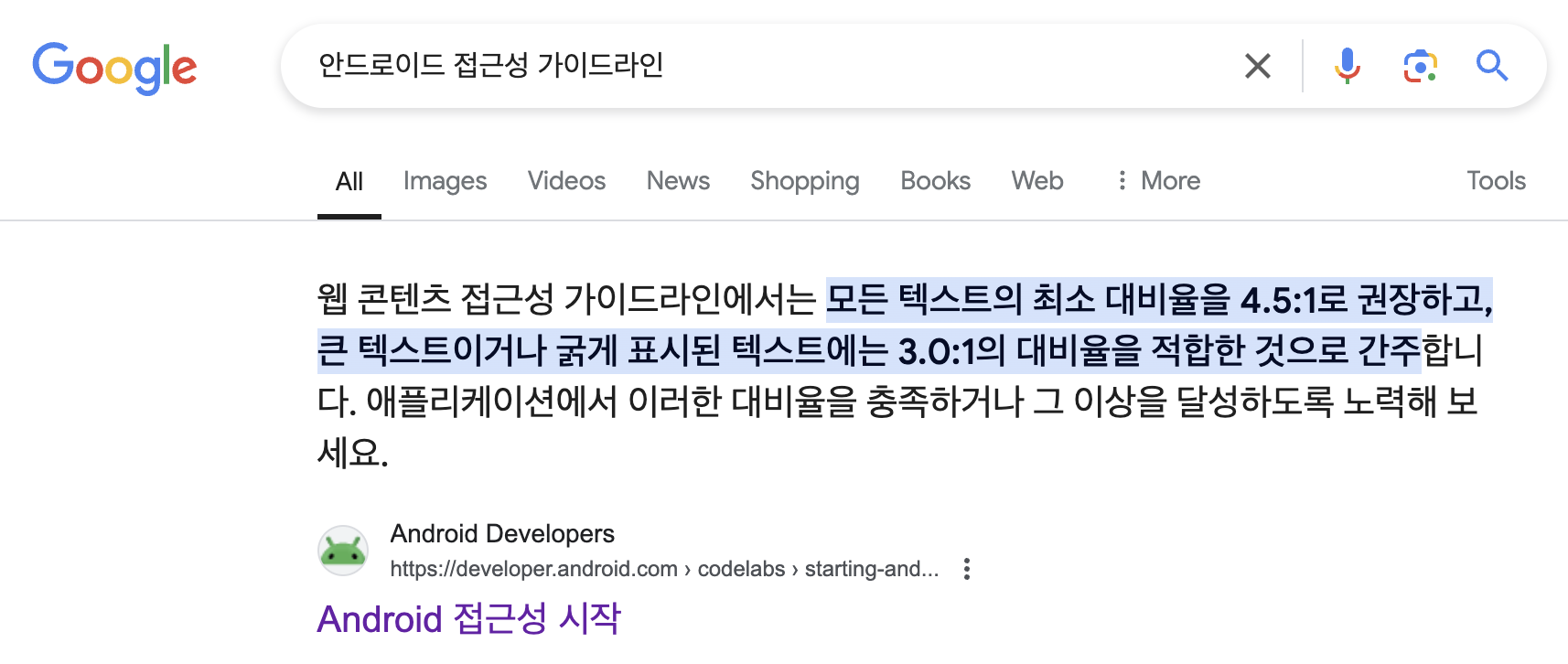이를 안드로이드에 대입하면 18sp 이상일 경우 3:1 대비 이상