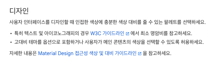 18sp이하의 볼드 처리되지 않은 텍스트의 경우 4.5 : 1 대비 이상을 권장합니다.