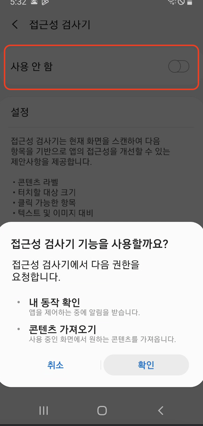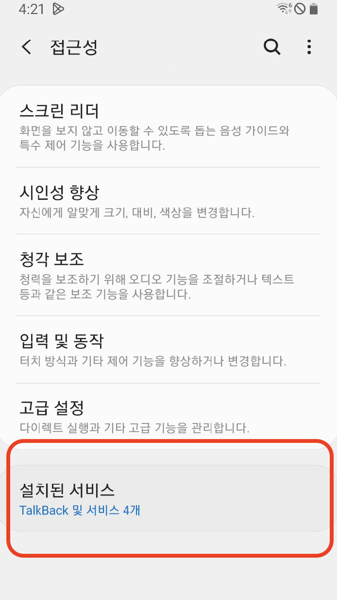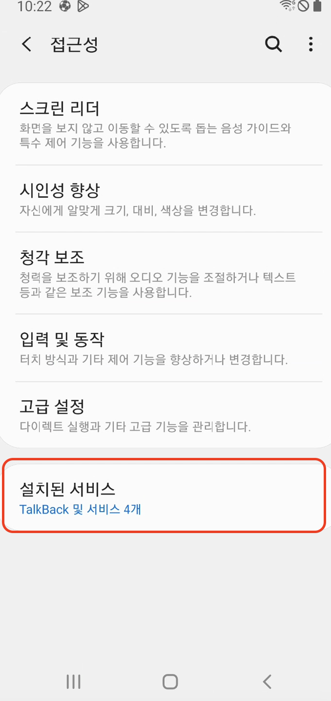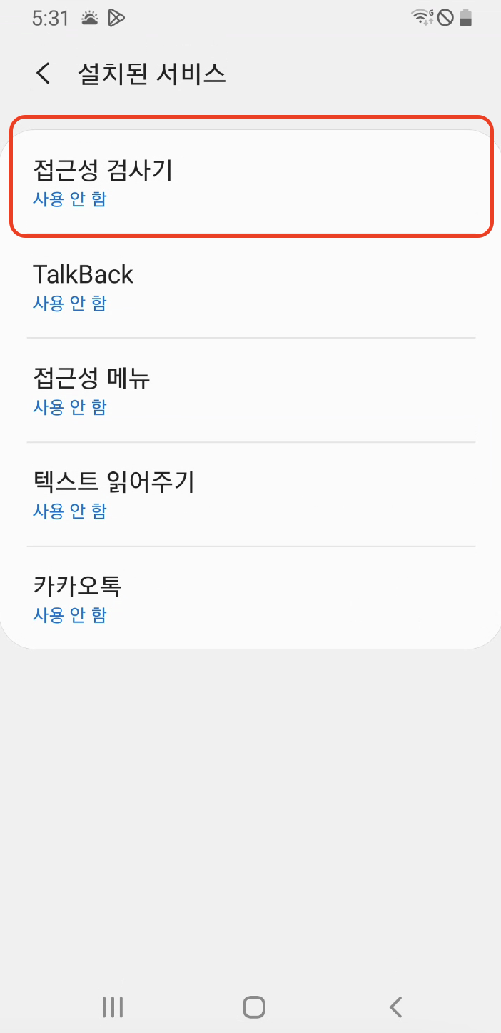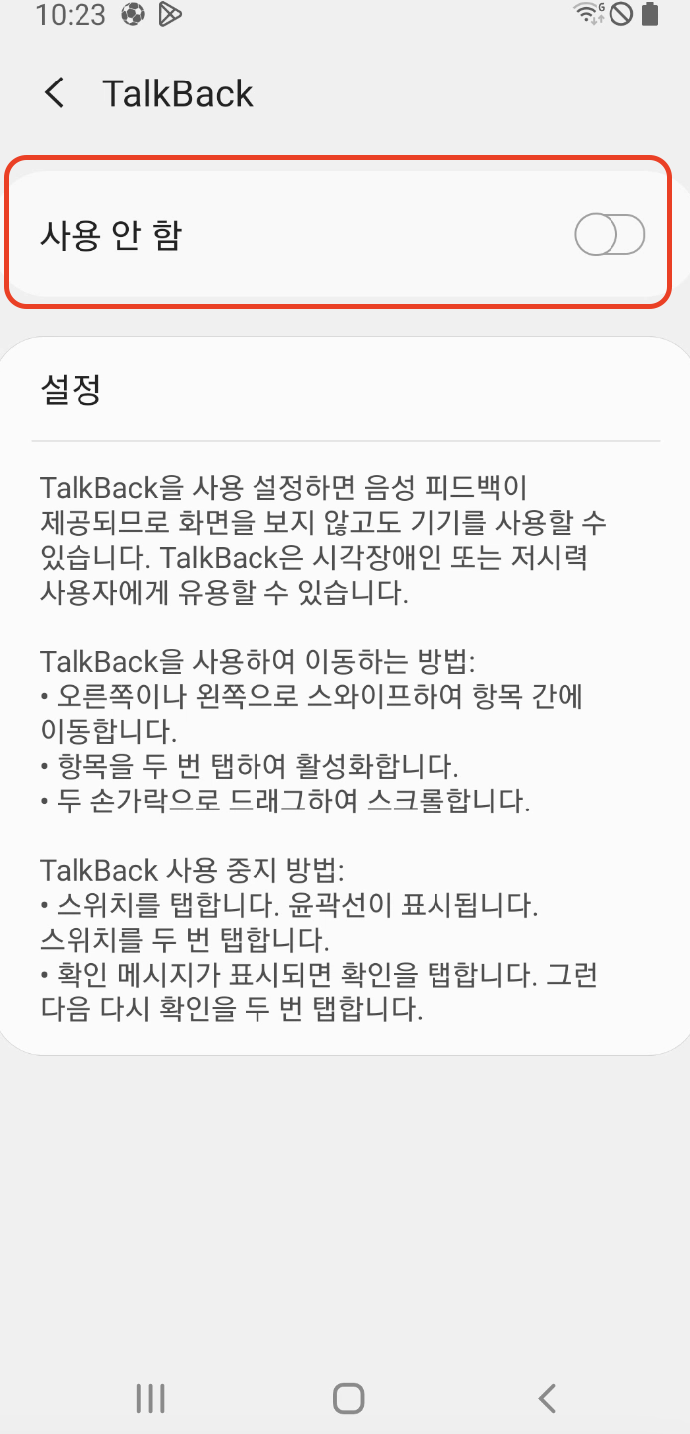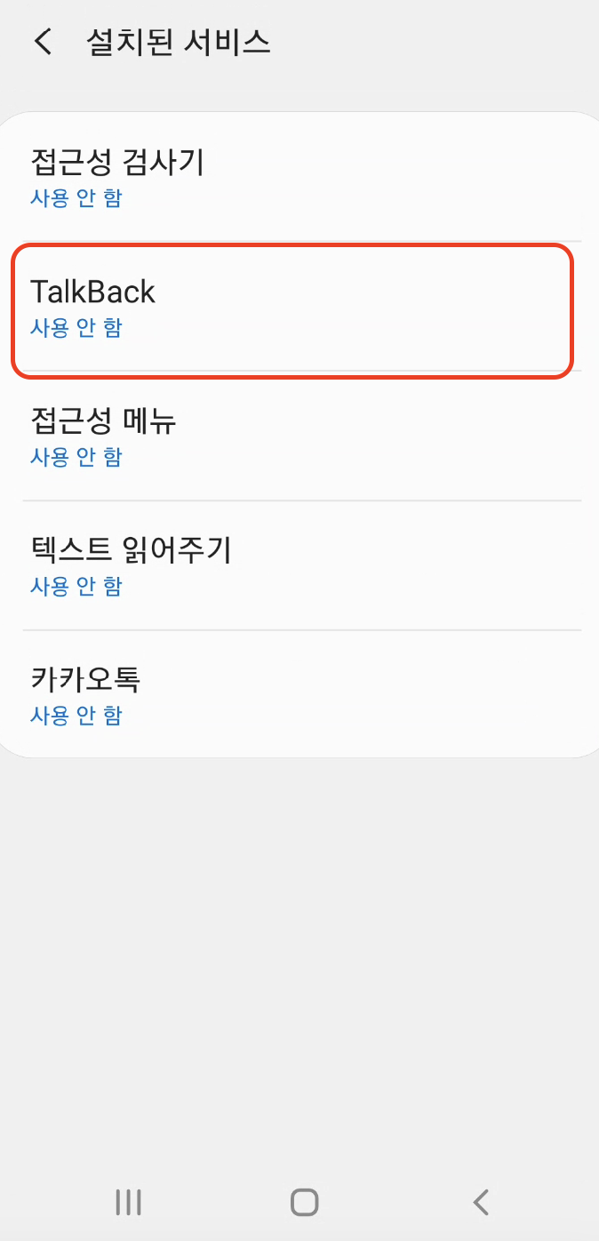 * TalkBack이 활성화되어 있는지 확인합니다.