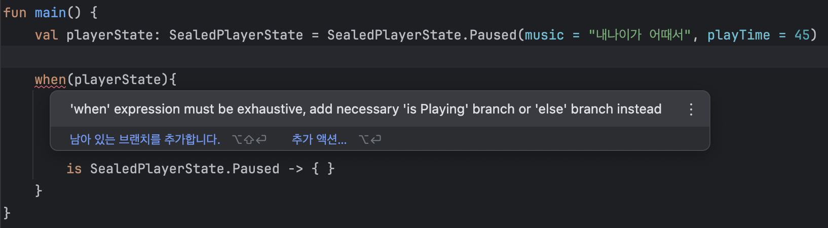 else -> println("알 수 없는 상태입니다.") // 새로운 상태가 추가될 가능성 있음