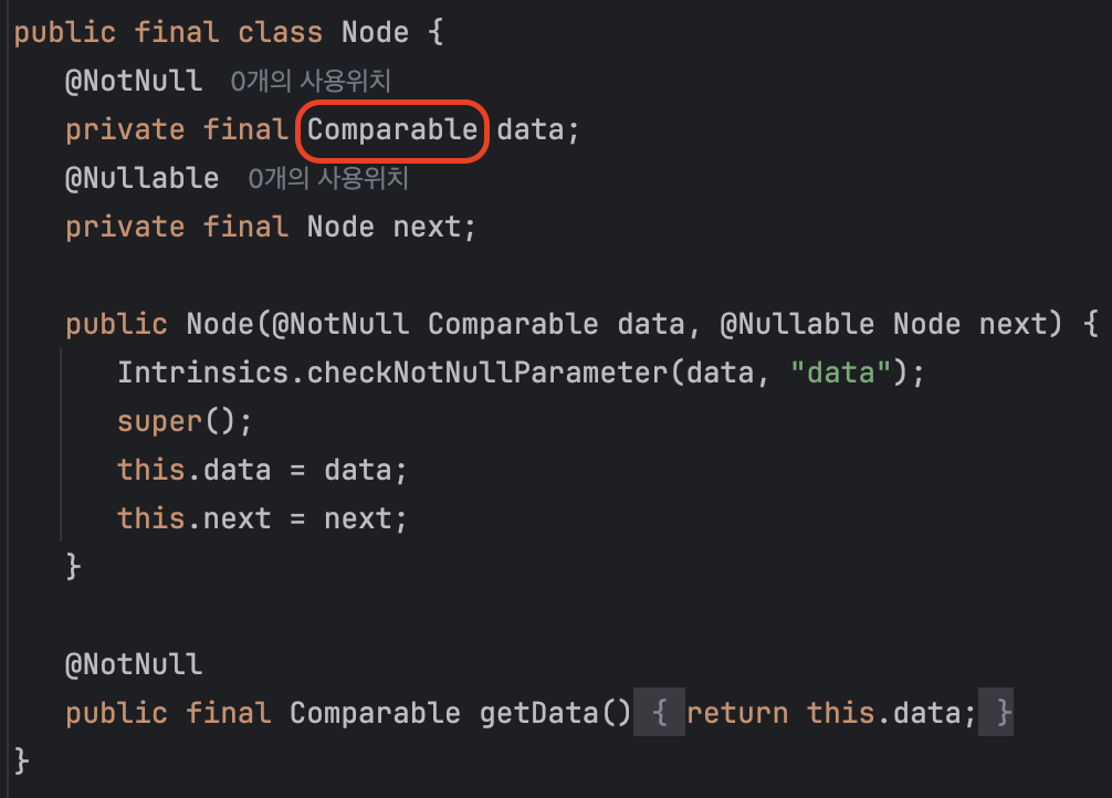 여기서는 T가 반드시 Comparable <T>을 구현한 타입이어야 하며, 컴파일 시에도 이 경계 타입이 유지됩니다.