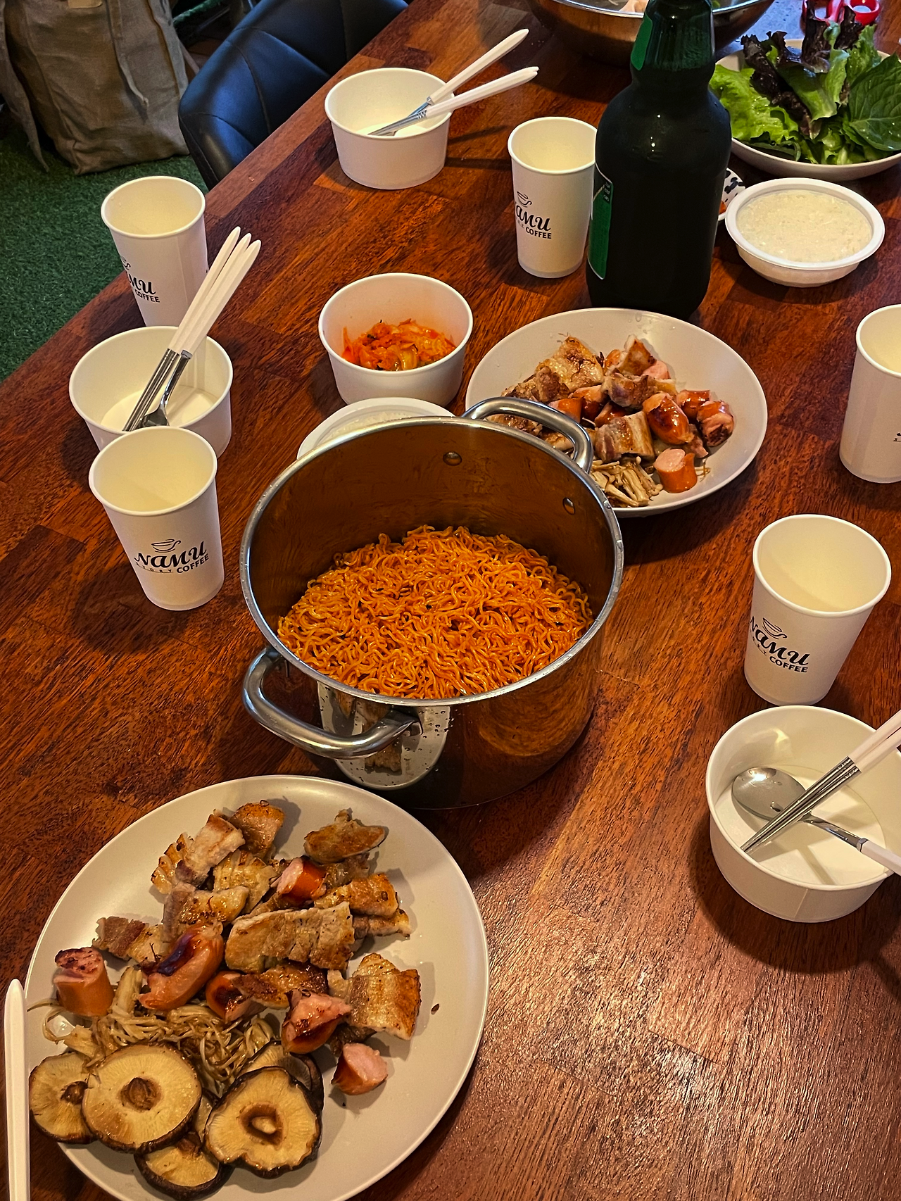 저녁 식사 시간에 바베큐를 해 먹었는데 감사하게도 고기 굽는 권한을 위임해 주셨다. 고기 굽는걸 좋아하다 보니 열심히 구웠다. 다들 맛있게 드셔주시는 모습이 너무나 감사했는데 문제는 내가 버섯을 안 먹는지라 버섯을 구울줄 몰라 버섯은 이든이 구워주셨다.