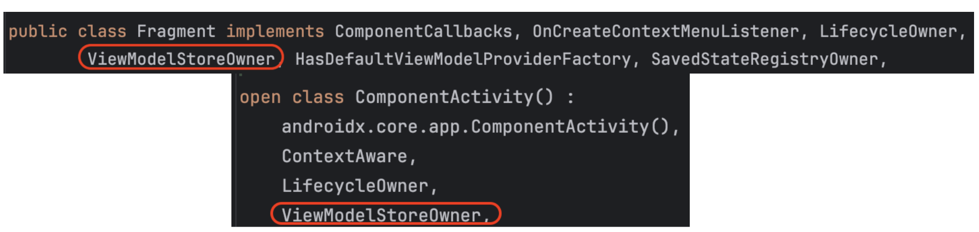 - Activity/Fragment의 내부 구현을 보면 ViewModelStoreOwner를 구현하고 있습니다.