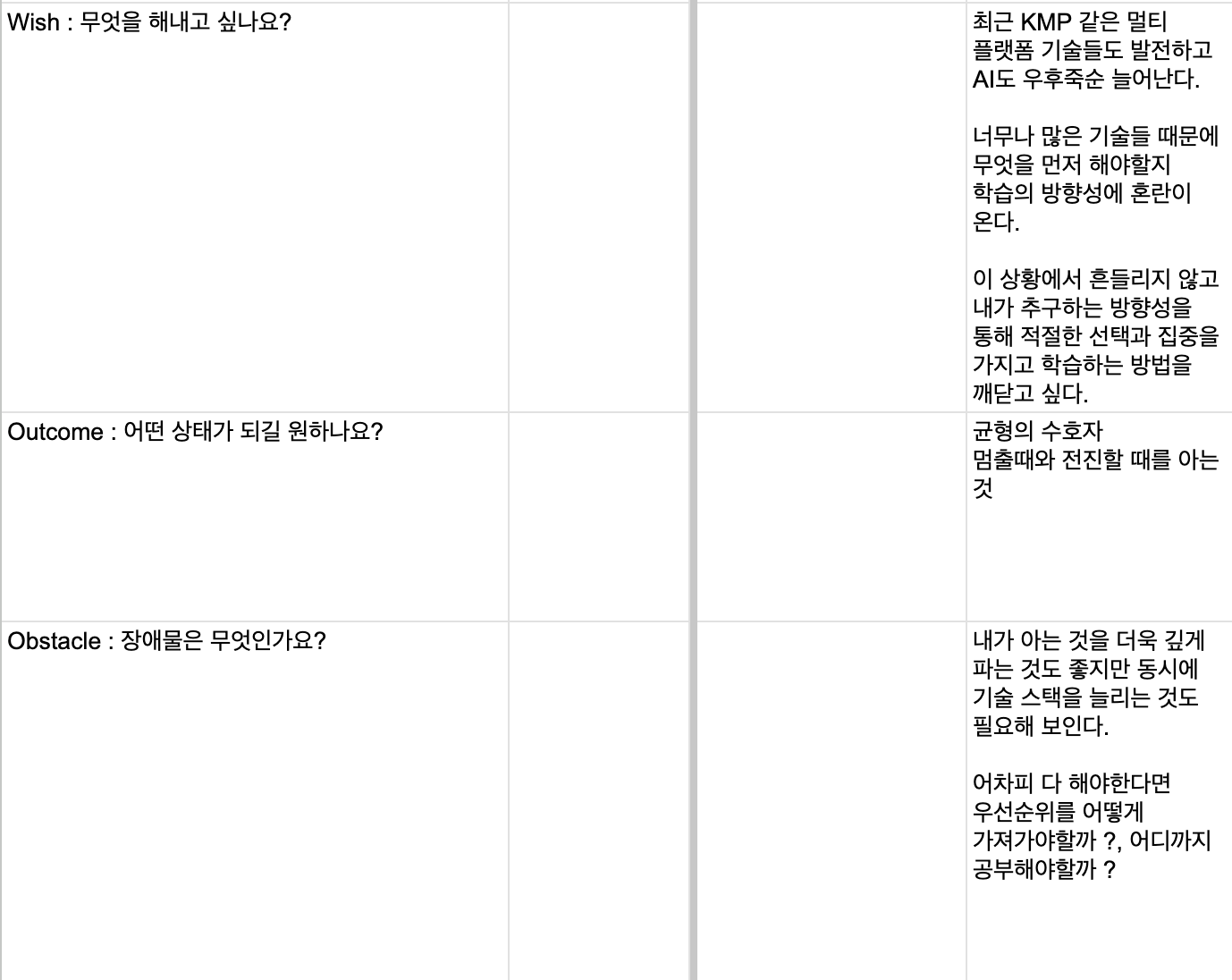 - 원하는 것을 이룸에 있어서 장애물은 무엇인지?