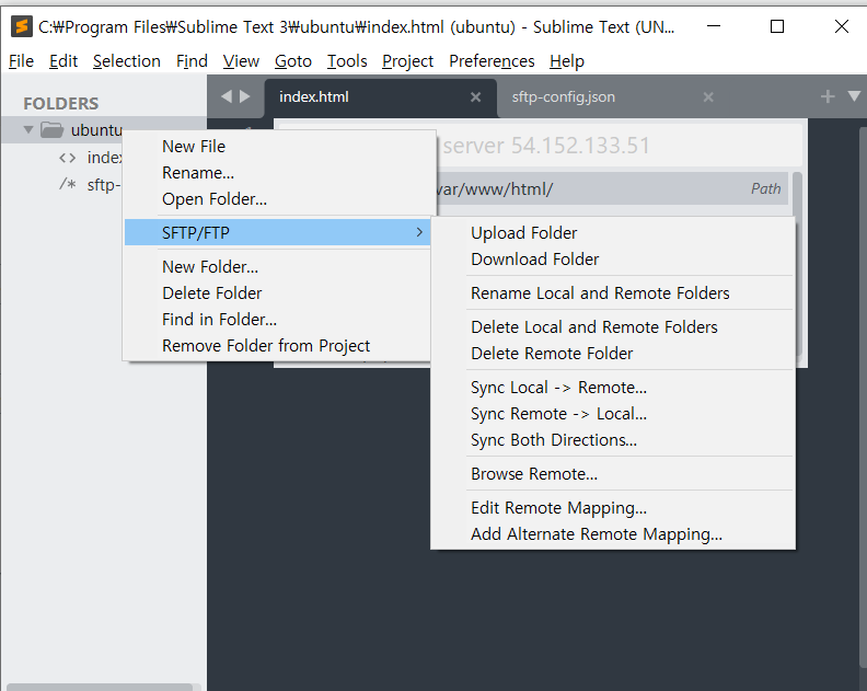 📌 STFP/FTP 설정 (에디터 → FileZila → Web Server 의 과정을 에디터 → Web Server로 바꿔주는 과정!)