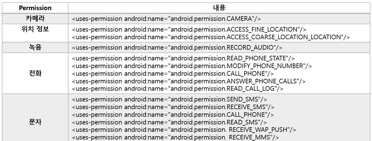 - (1) Android Manifest.xml 파일에 Permission 선언