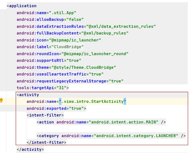 - AndroidManifest.xml 에서 액티비티를 런처로 지정해 앱의 시작점, 즉 앱의 프로세스의 시작점을 지정할 수 있습니다.